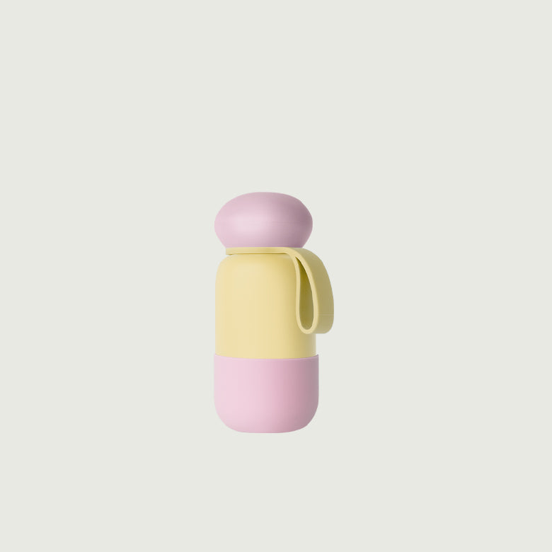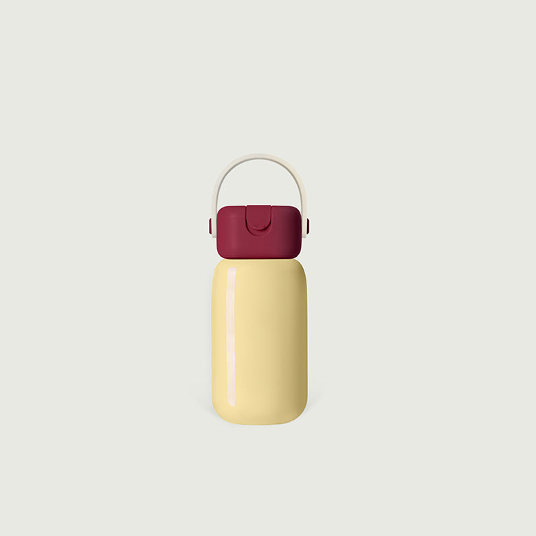 A leak-proof ergonomic lid that's inspired by the shape of a pebble. Best with loop—a strap to make carrying your flask easier.