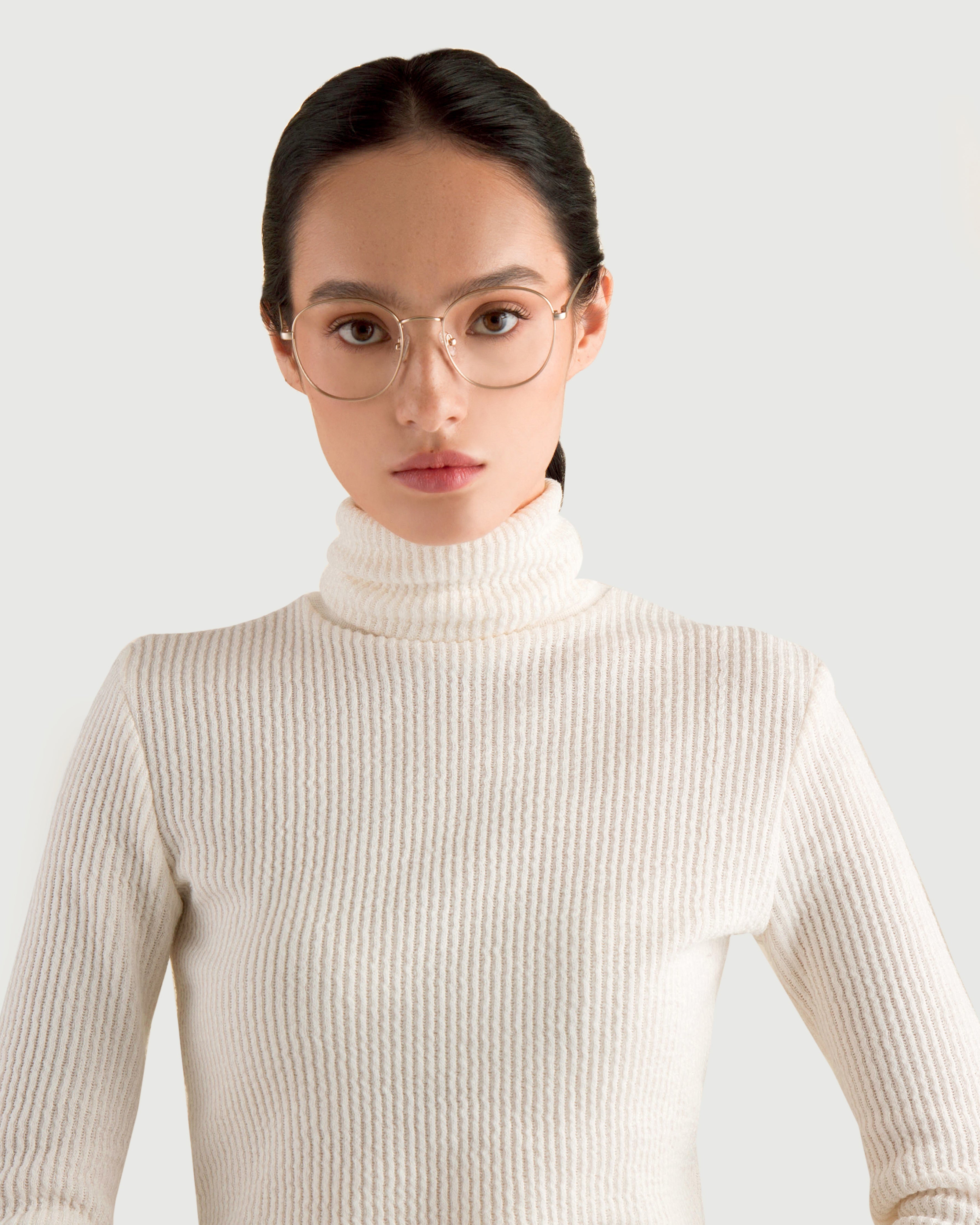 A no-nonsense round frame defined by stainless steel for a whipsmart look. You'll get things done in this pair. Also available in a wider size.
