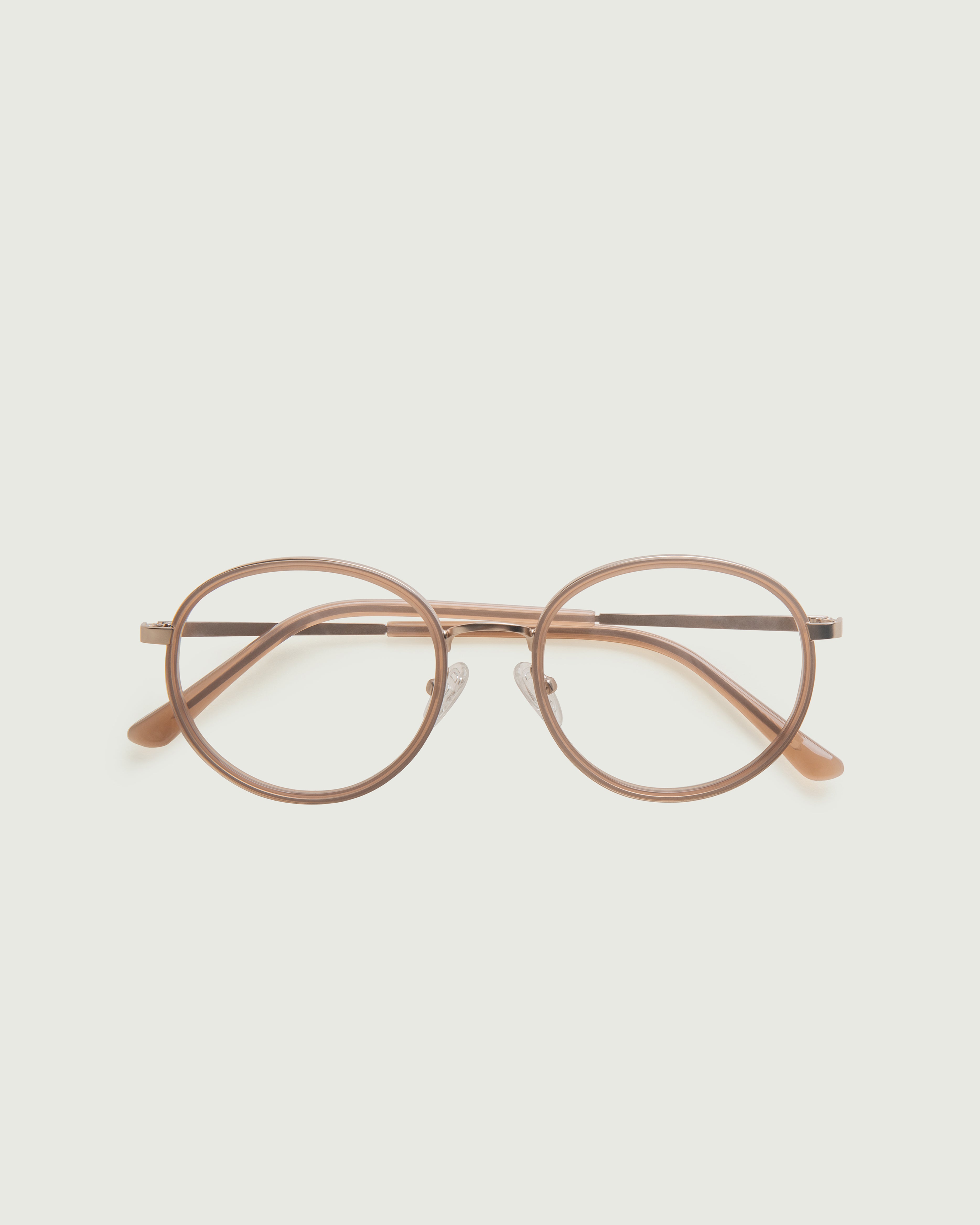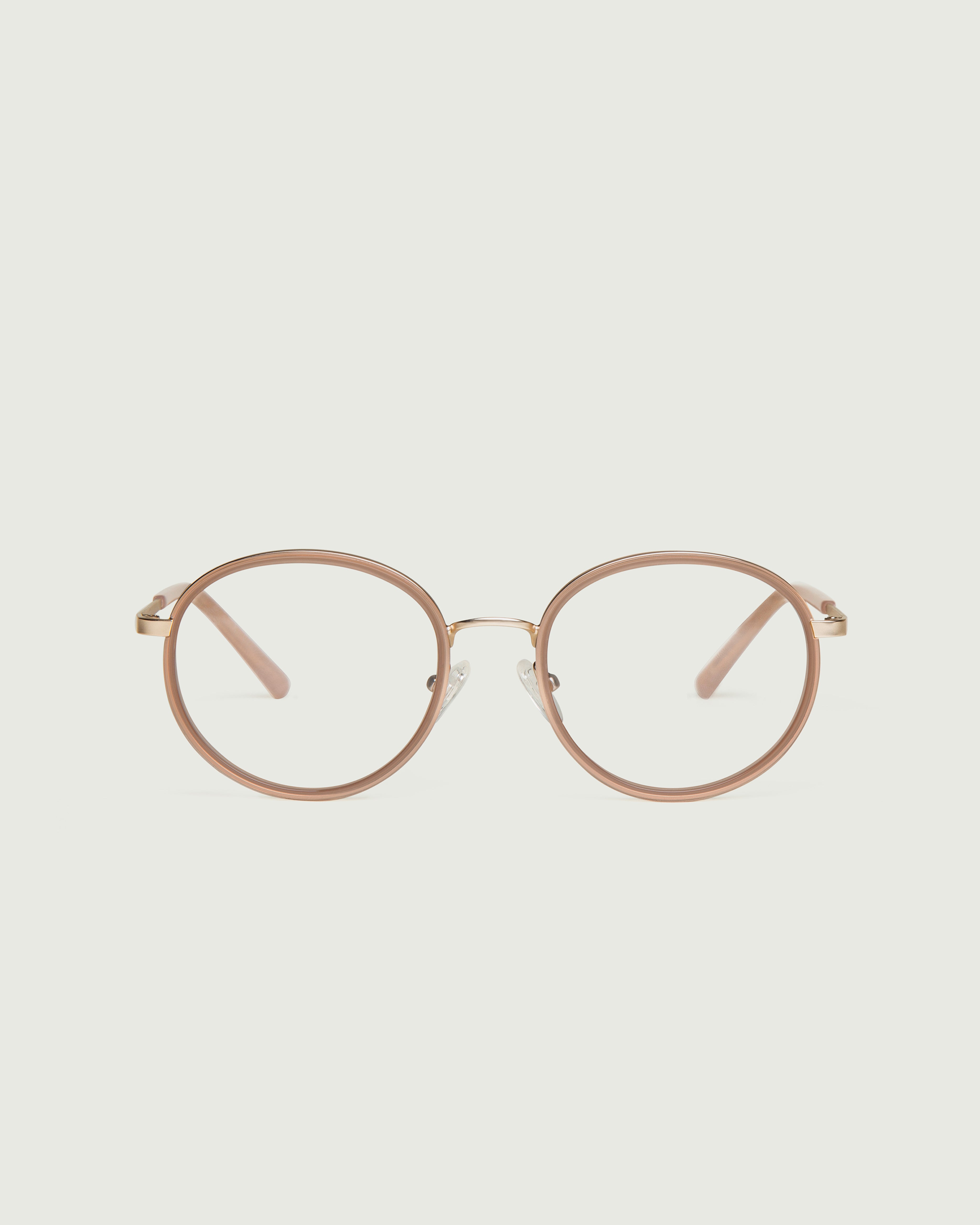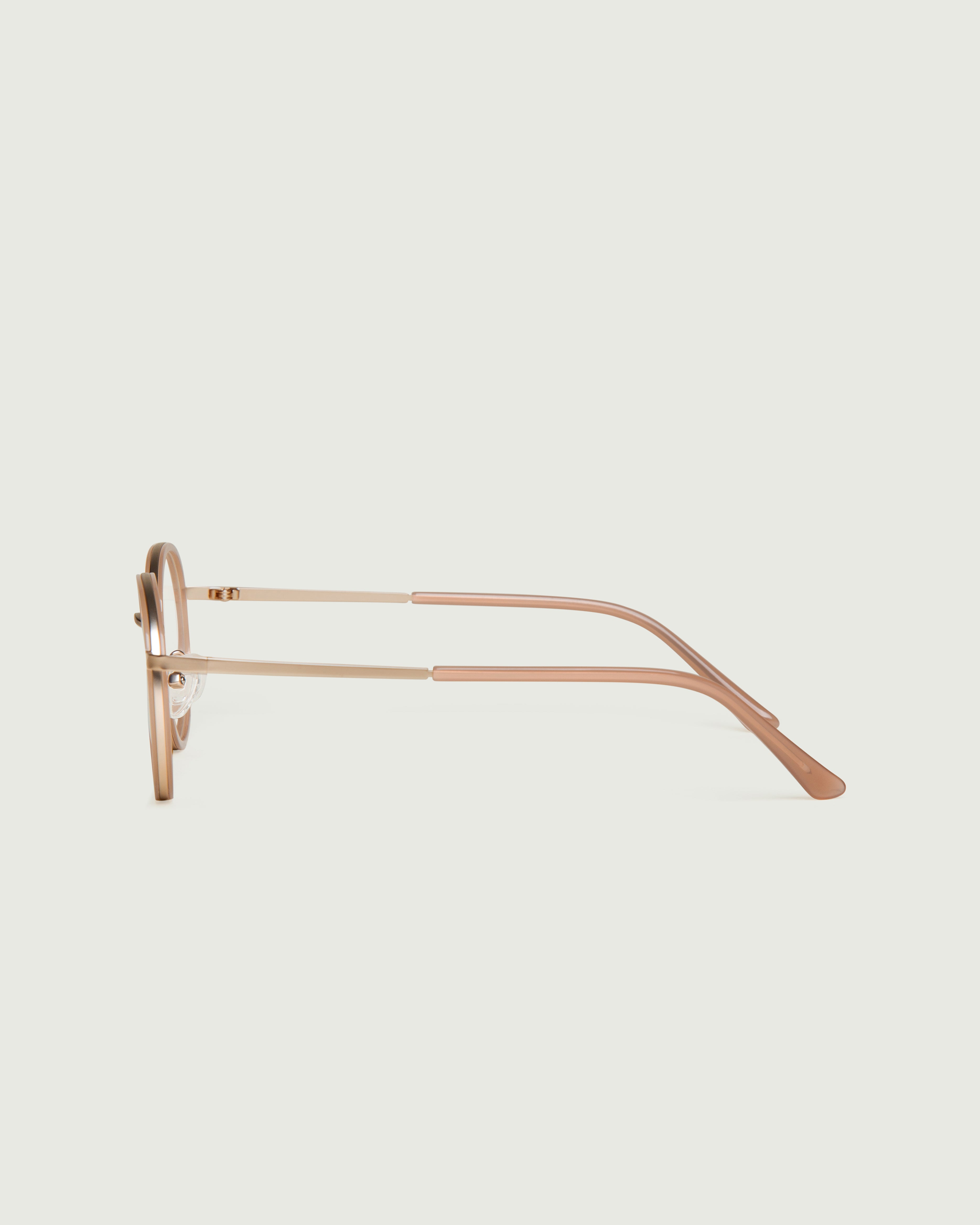 A round frame made with bio-acetate and stainless steel.