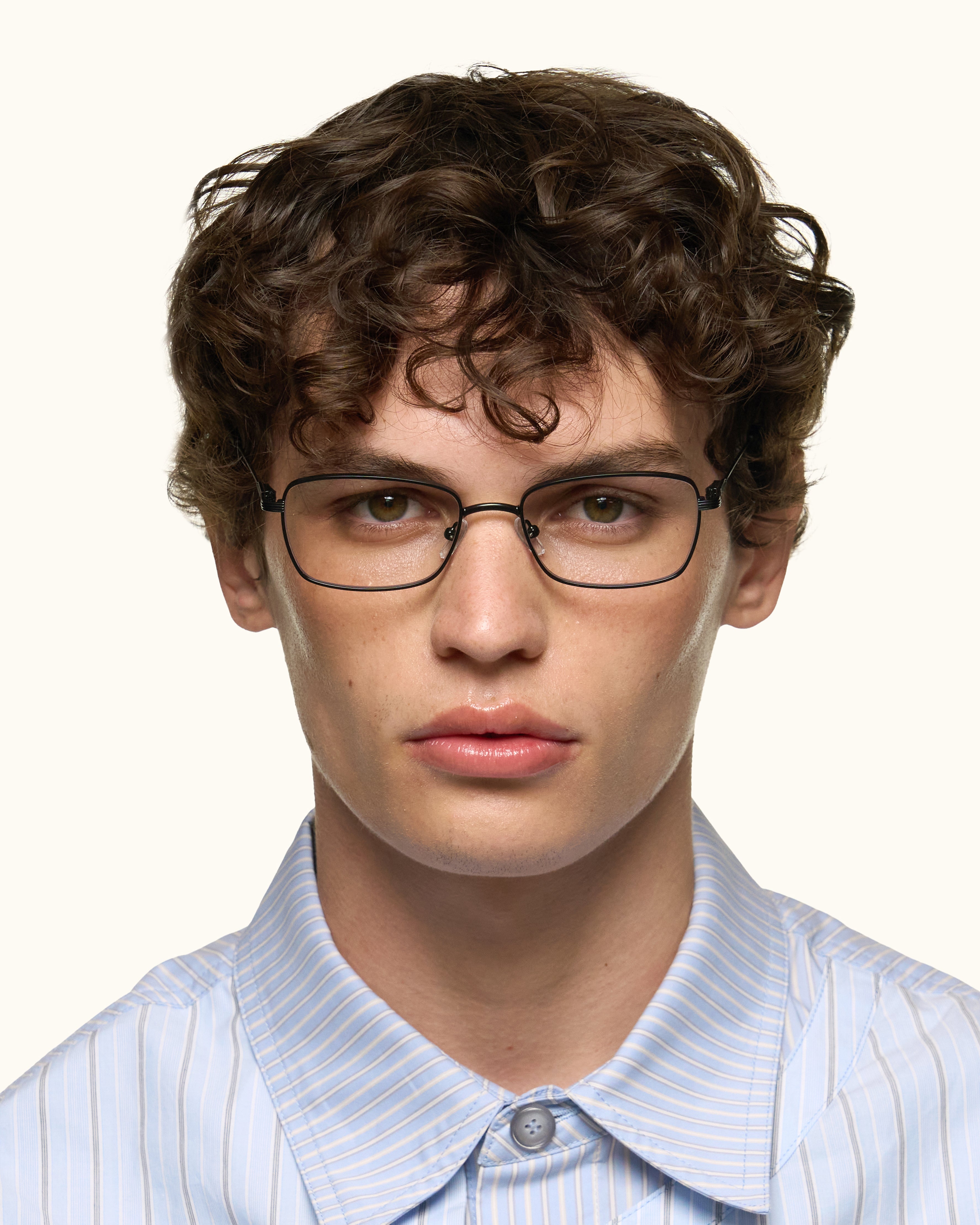 A slim rectangle metal frame with prescription-free Anti-Rad lenses. Learn more about Anti-Rad Eyewear.