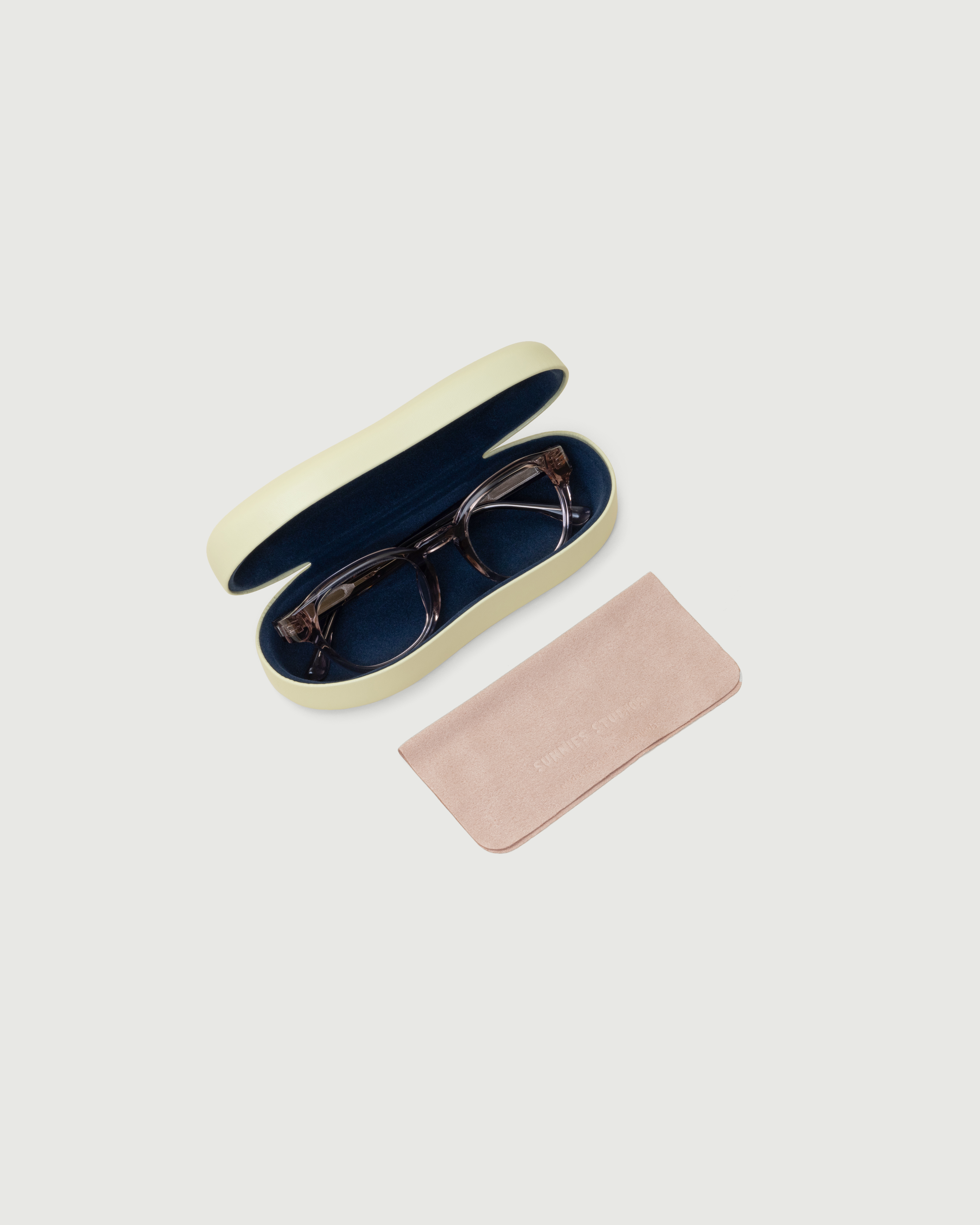 Keep your frames safe and secure in a pebble-inspired case that prevents damage. Fits one pair of eyewear and comes with a cleaning cloth.