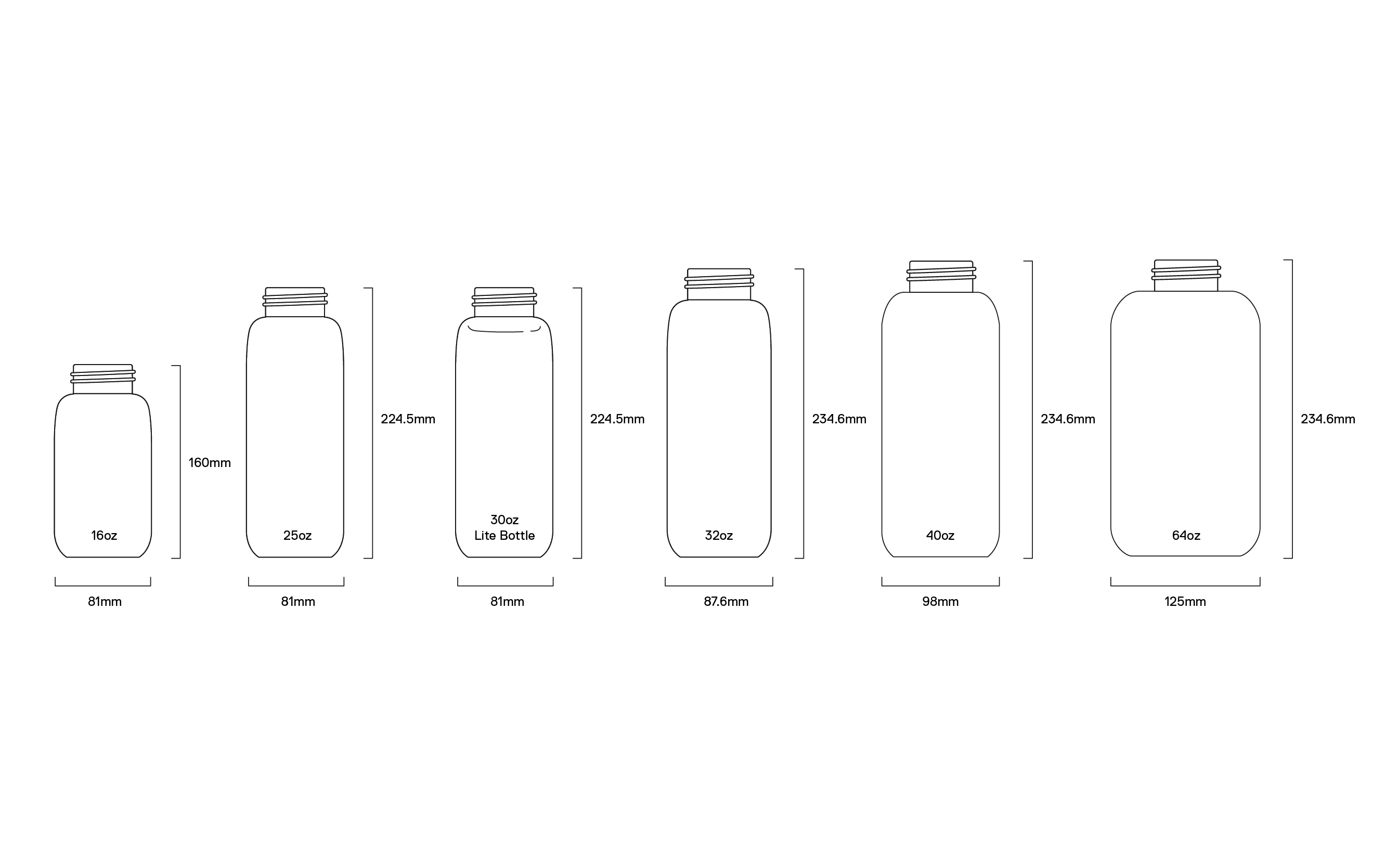 The Bottle is a 25oz, double-walled insulated bottle made of stainless steel.