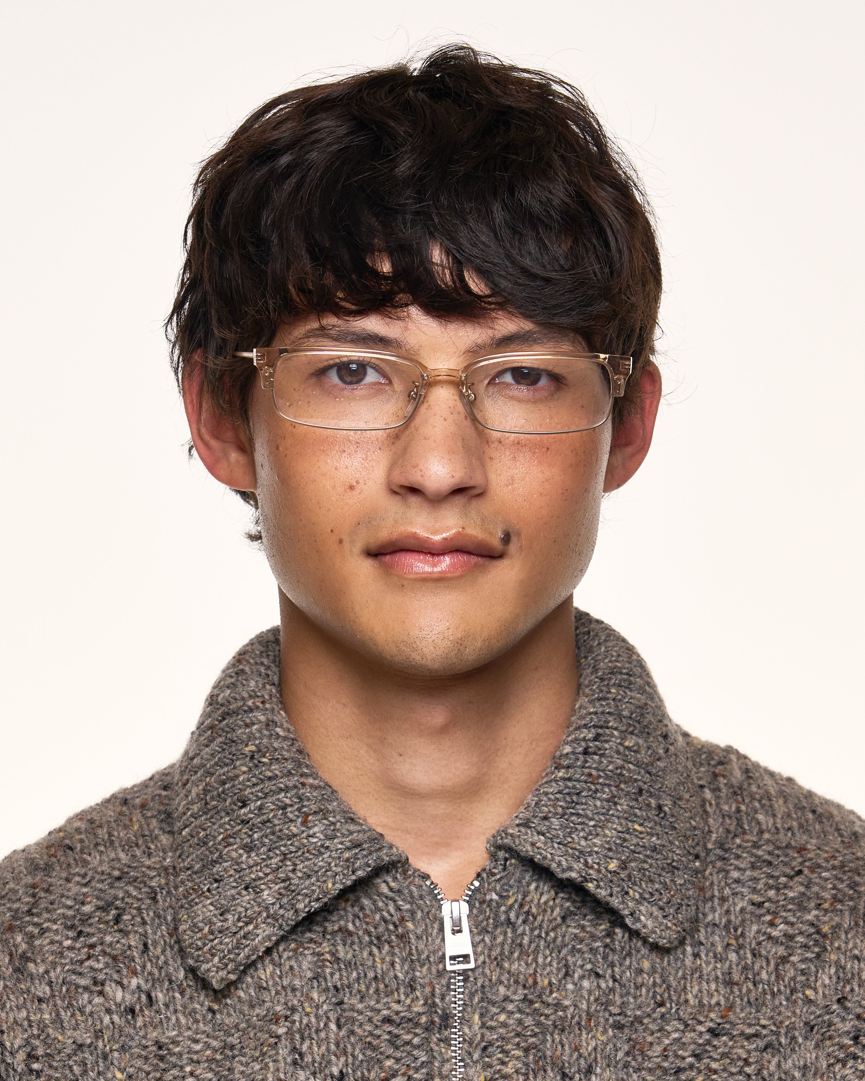 A slim browline frame with stainless steel arms.