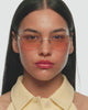An oval frame that appears rimless.