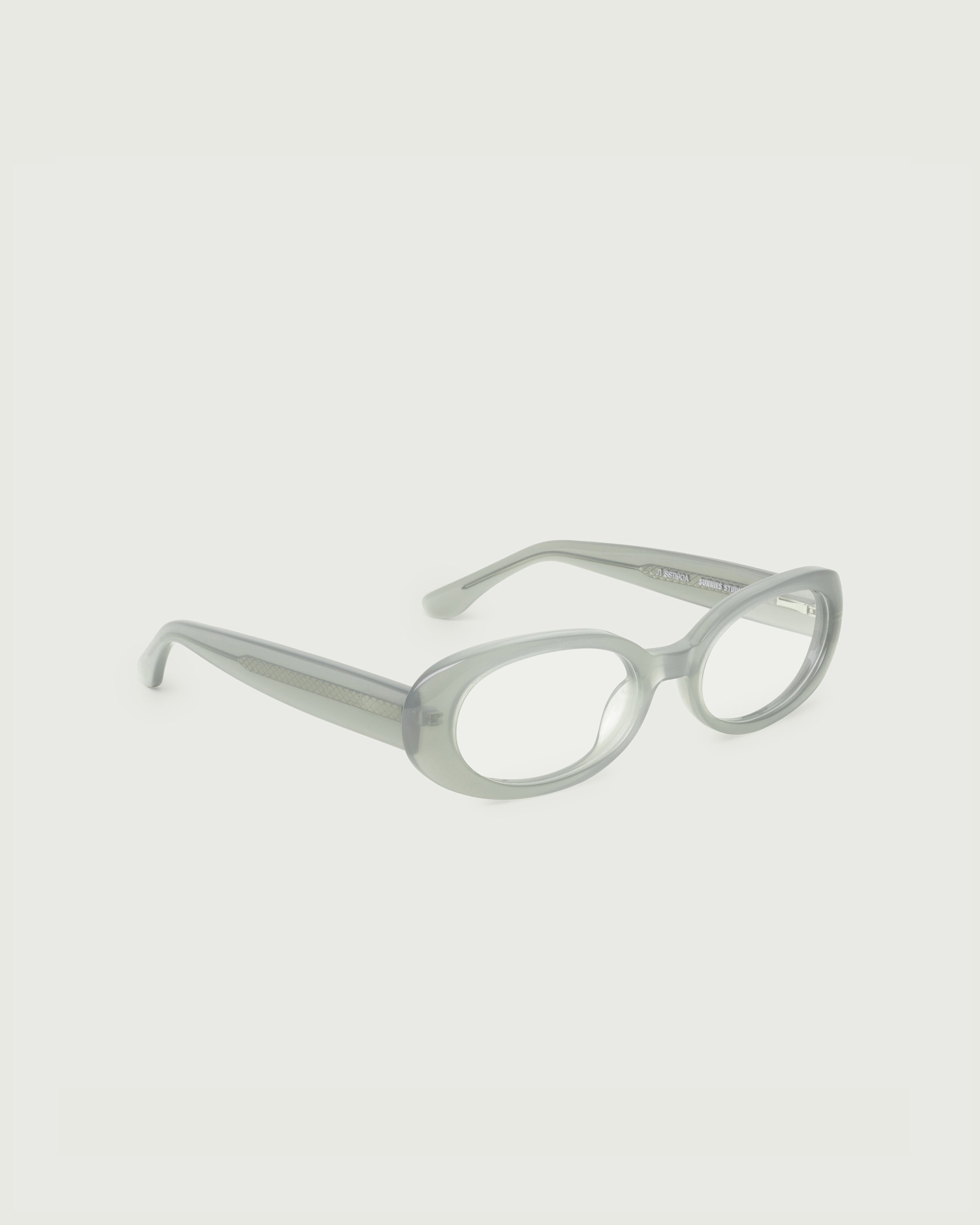 A slim oval frame. Also available in sunglasses.