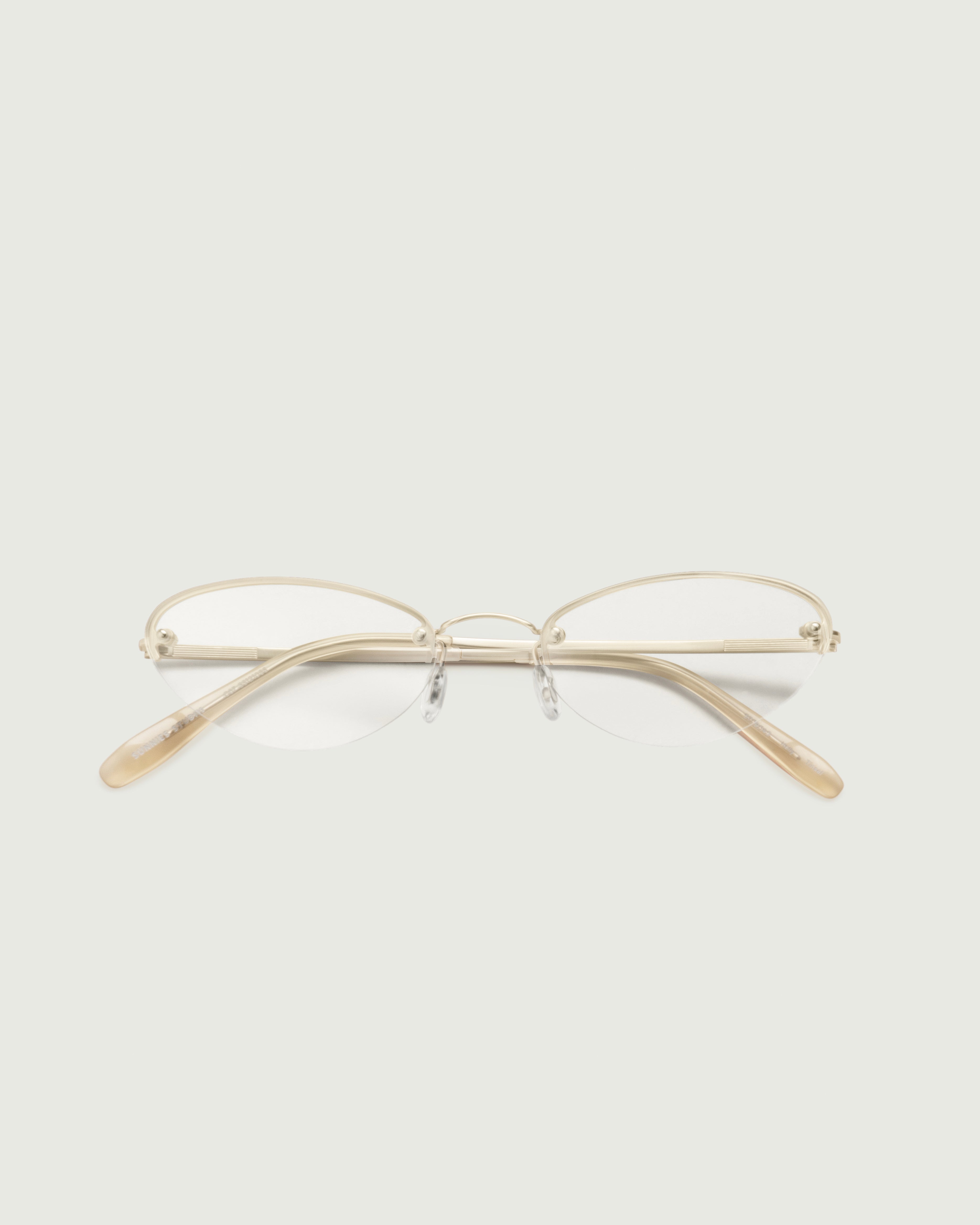 A sleek and lightweight cateye frame that appears rimless.
