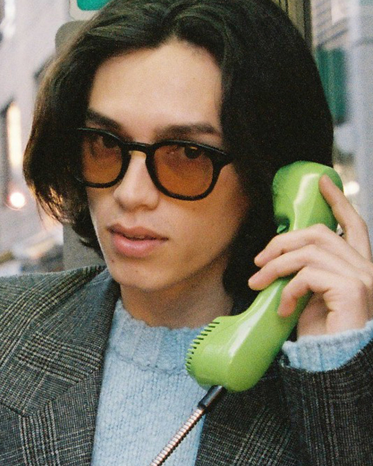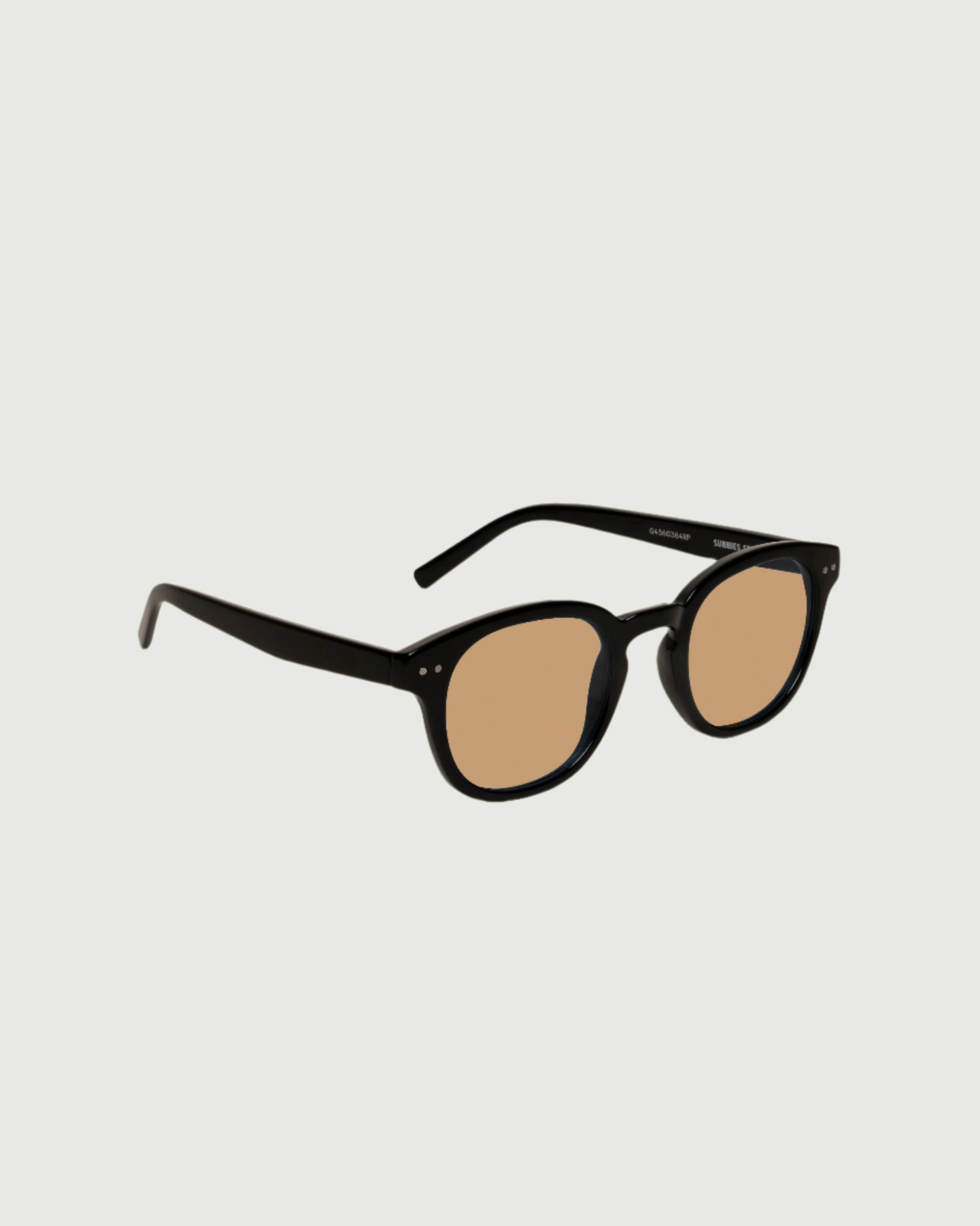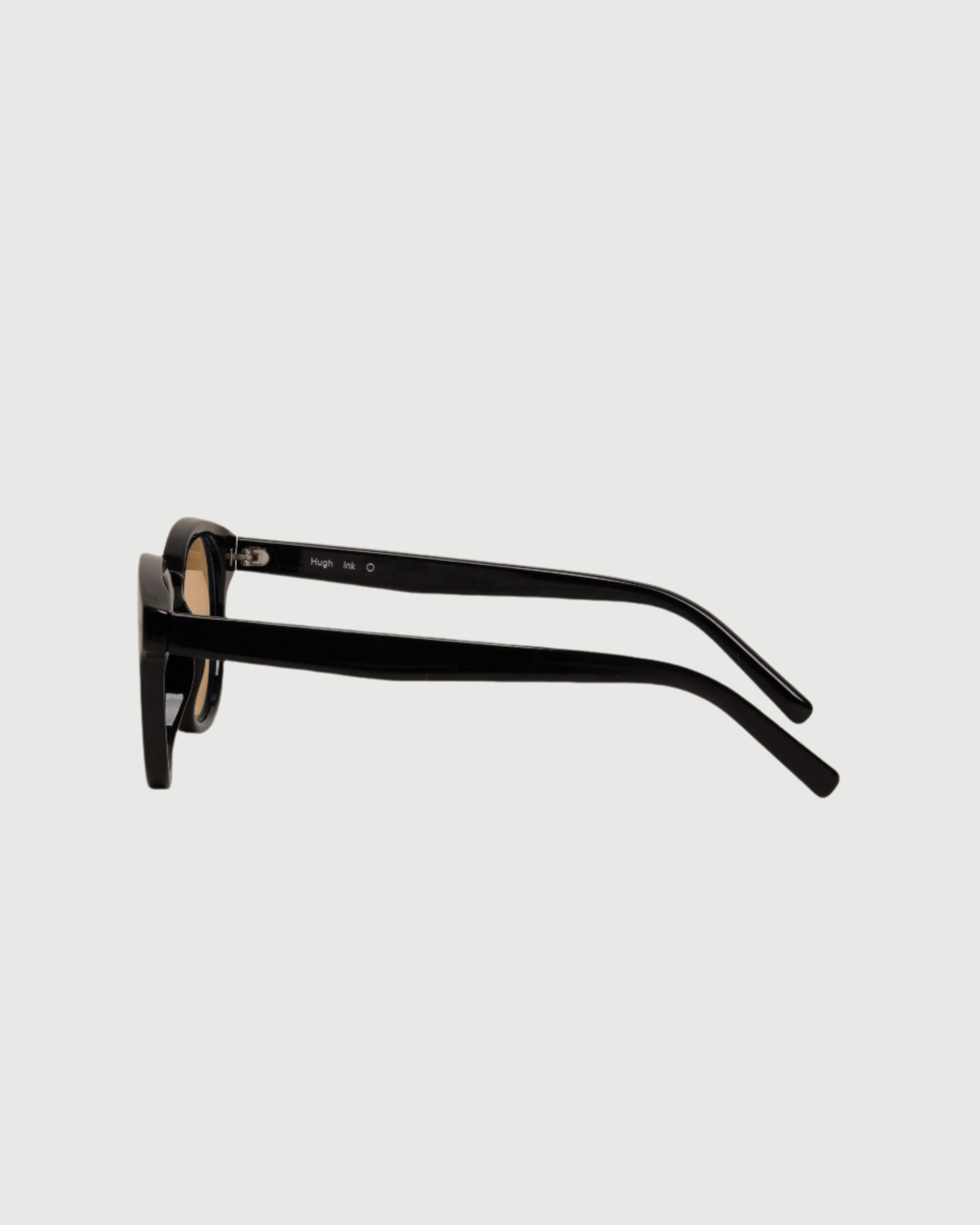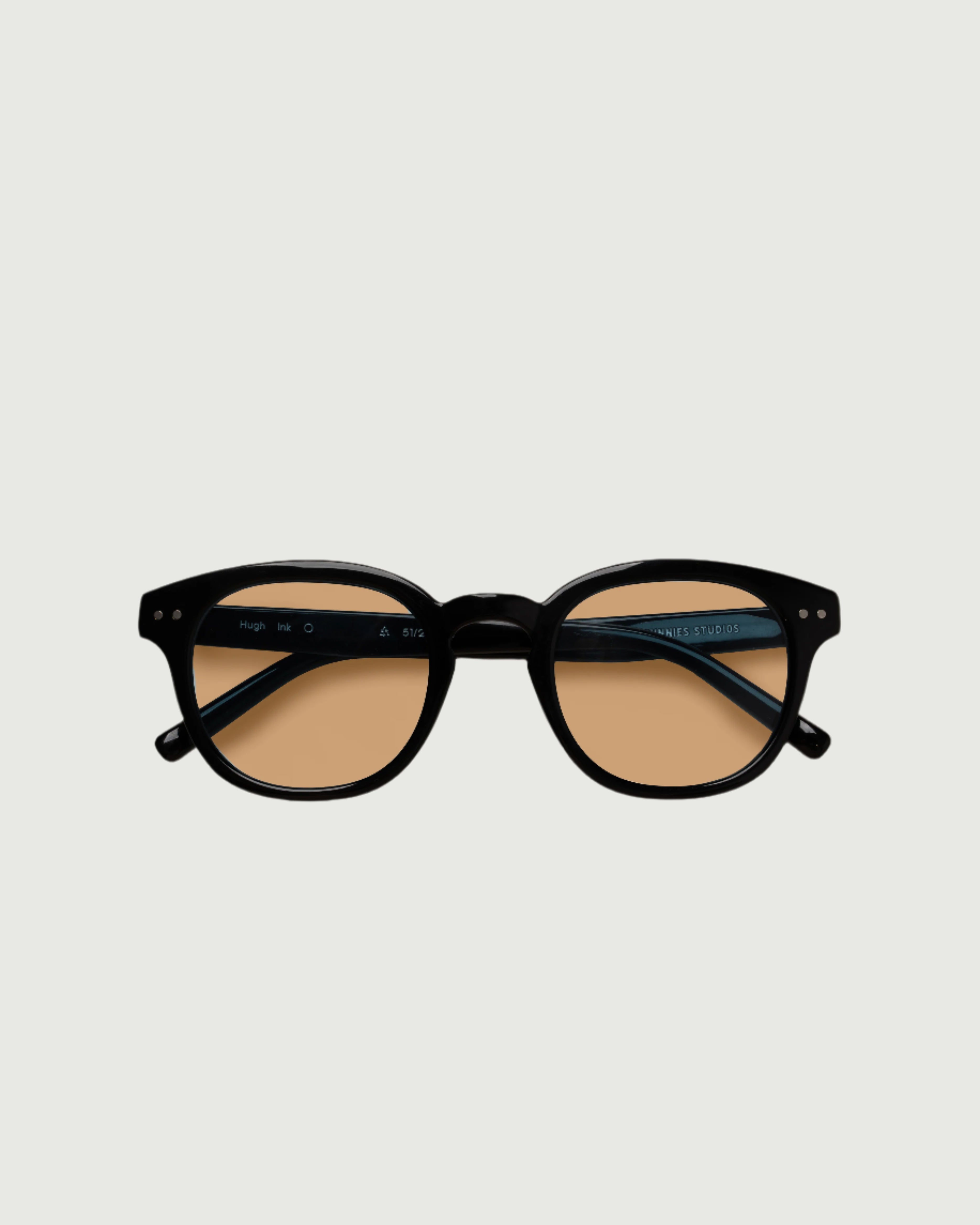 A chunky round frame with lightly tinted lenses.
