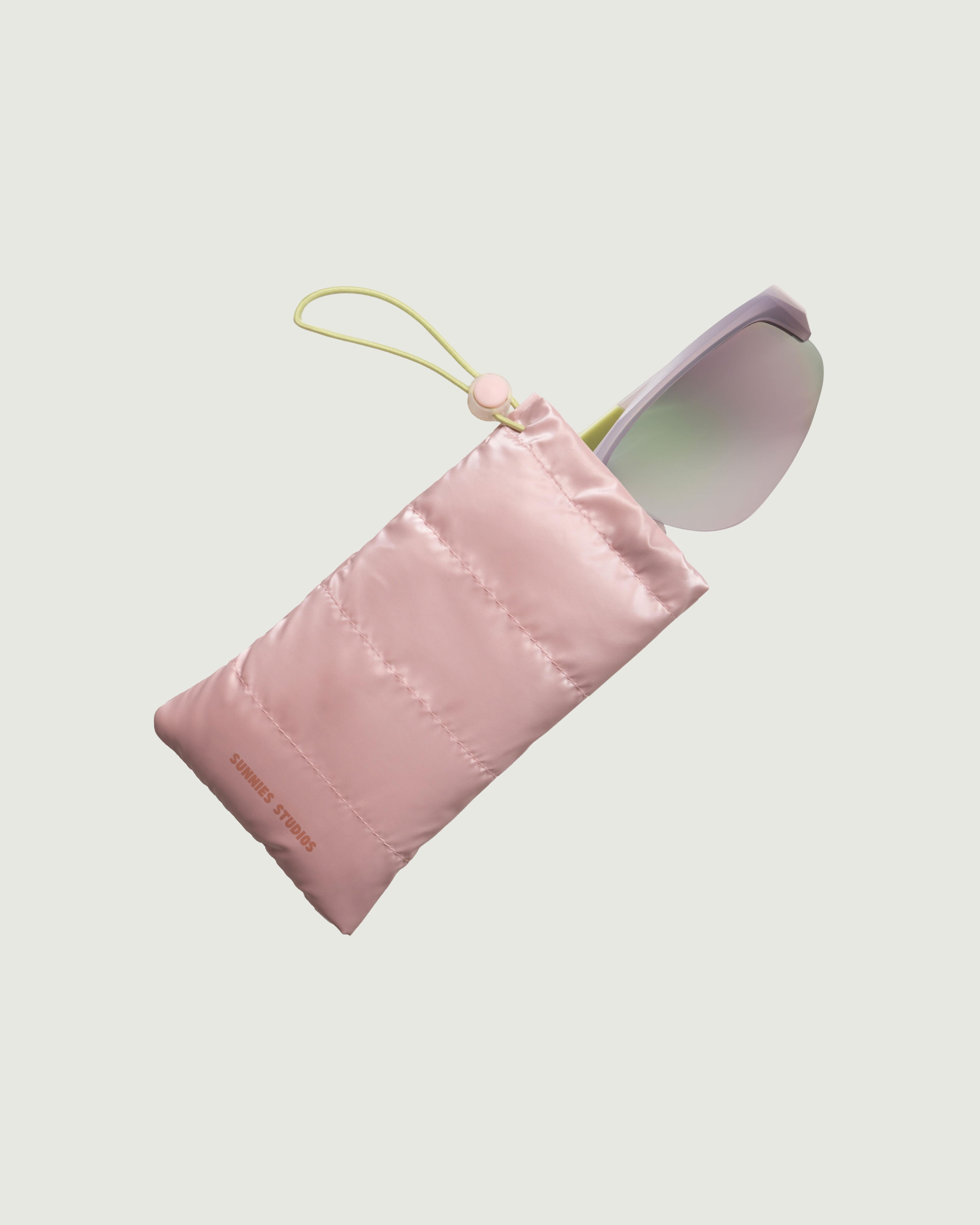 A puffy sac designed for one pair of wraparound frames.
