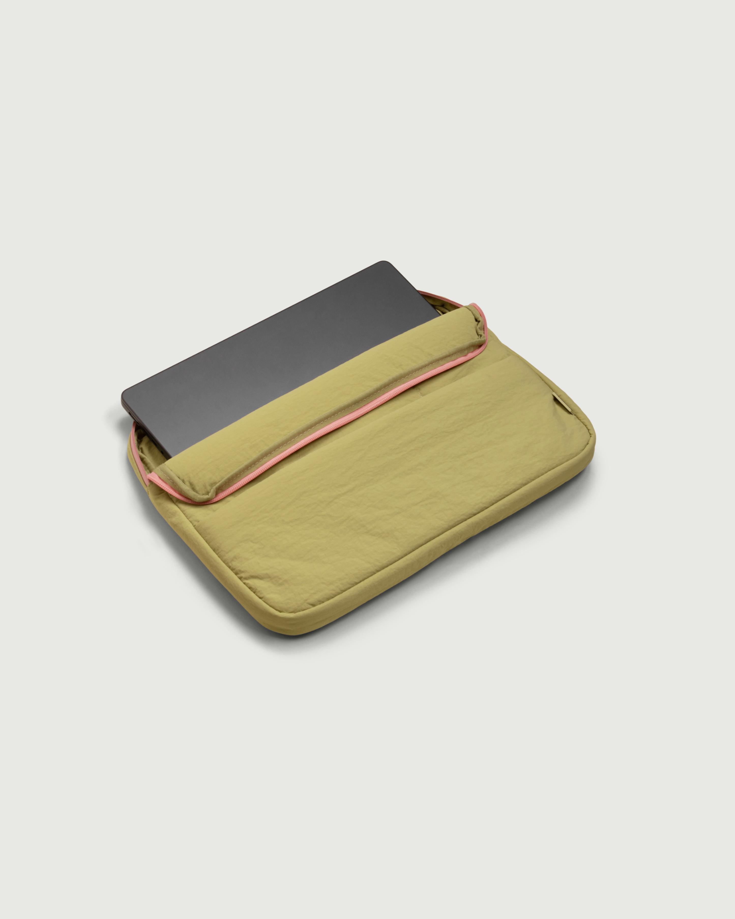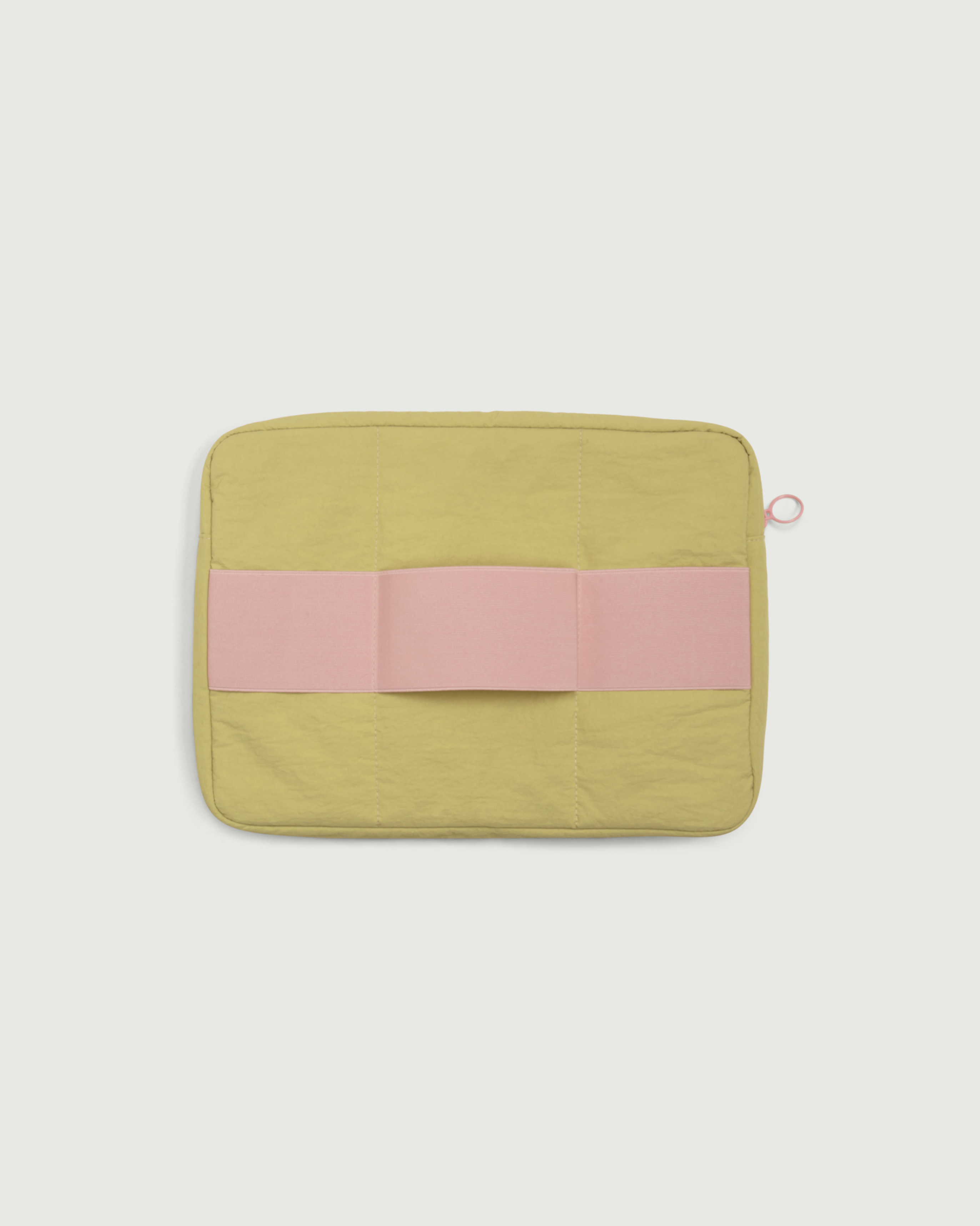 A protective case for your laptop, made with a puffy and lightweight nylon material. Designed with an elastic strap so you can carry it securely on the go.