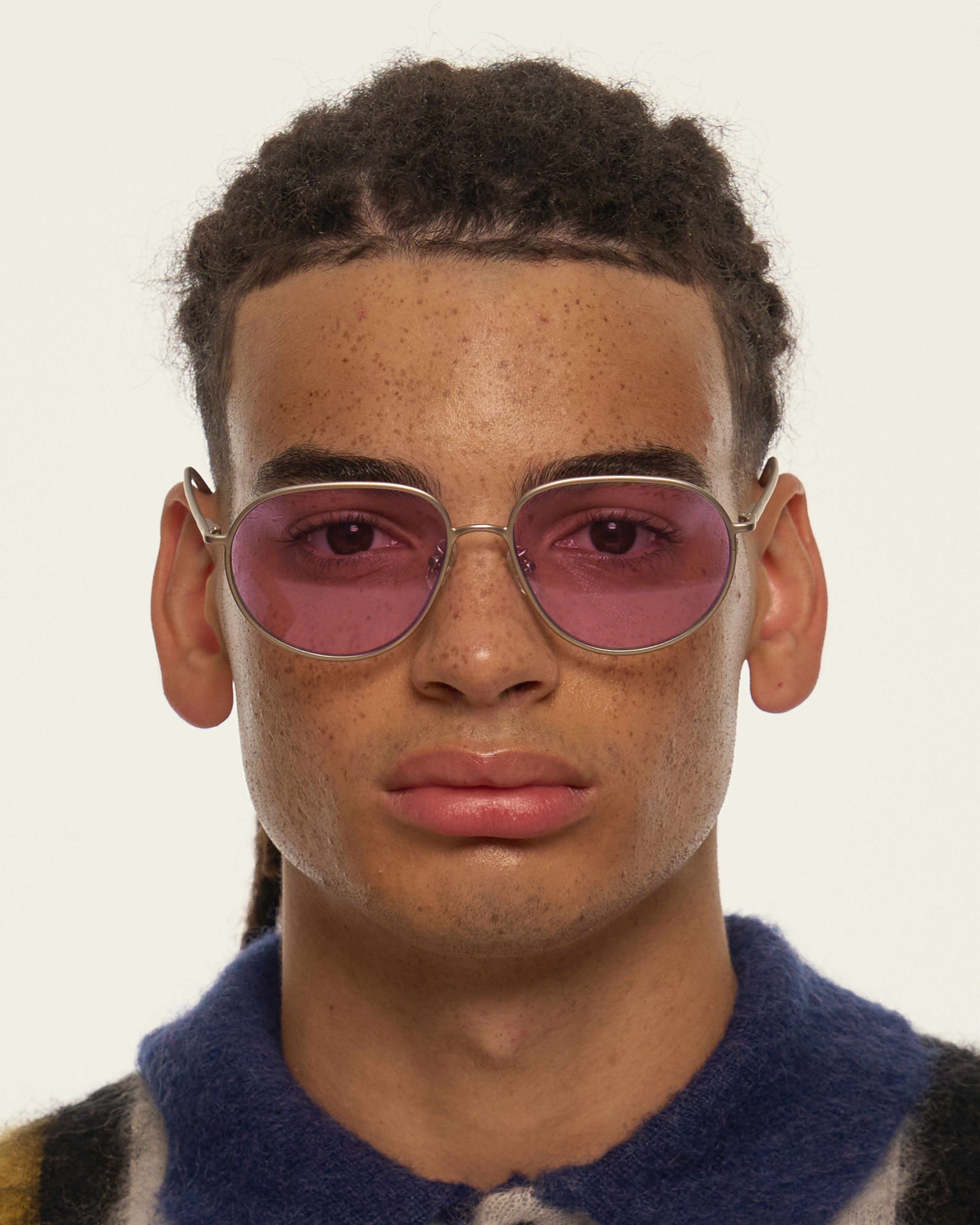 An oversized pilot frame with a tubular metal structure. Equipped with prescription-free Anti-Rad lenses. Learn more about Anti-Rad Eyewear.