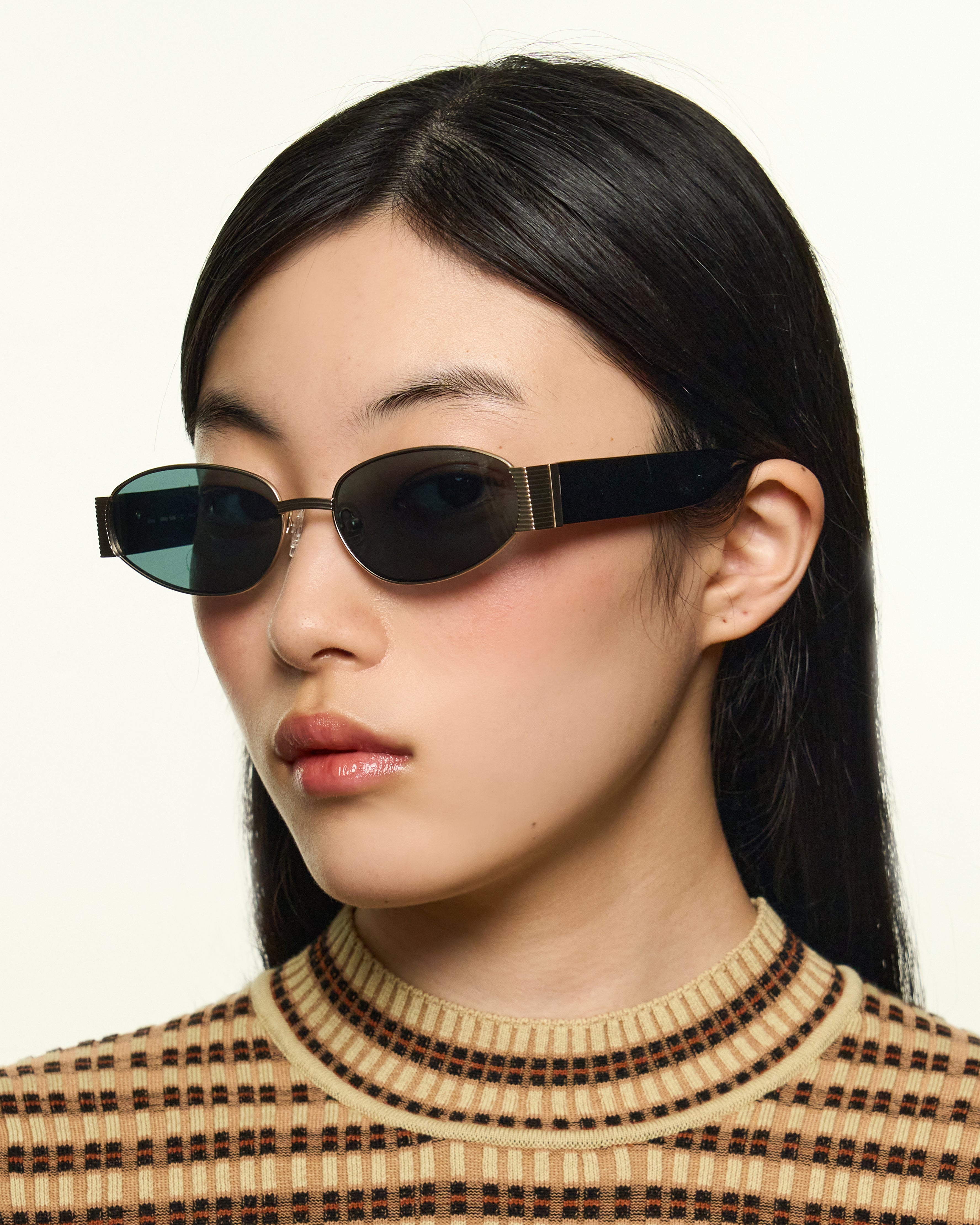 A metal cateye frame with chunky acetate arms.