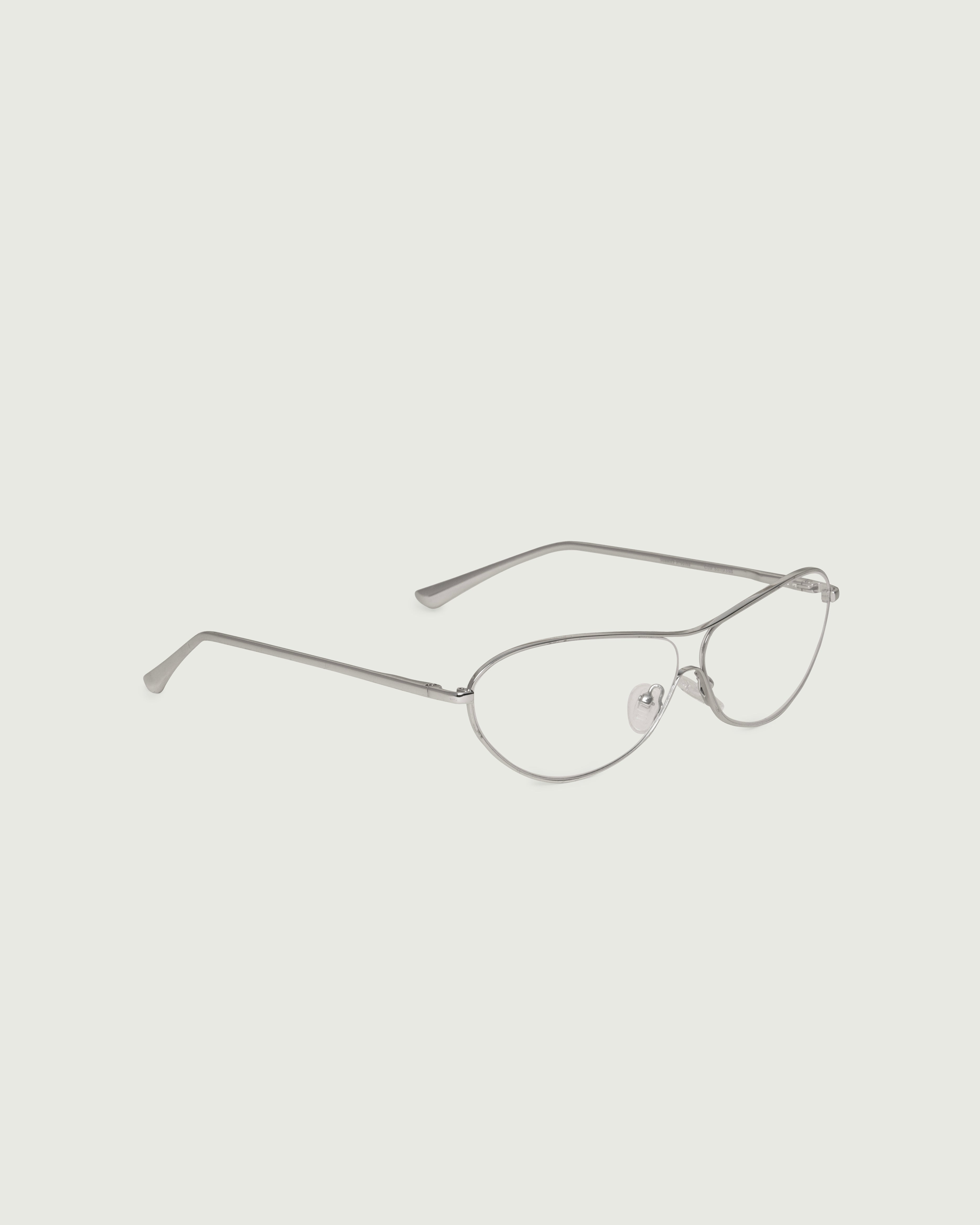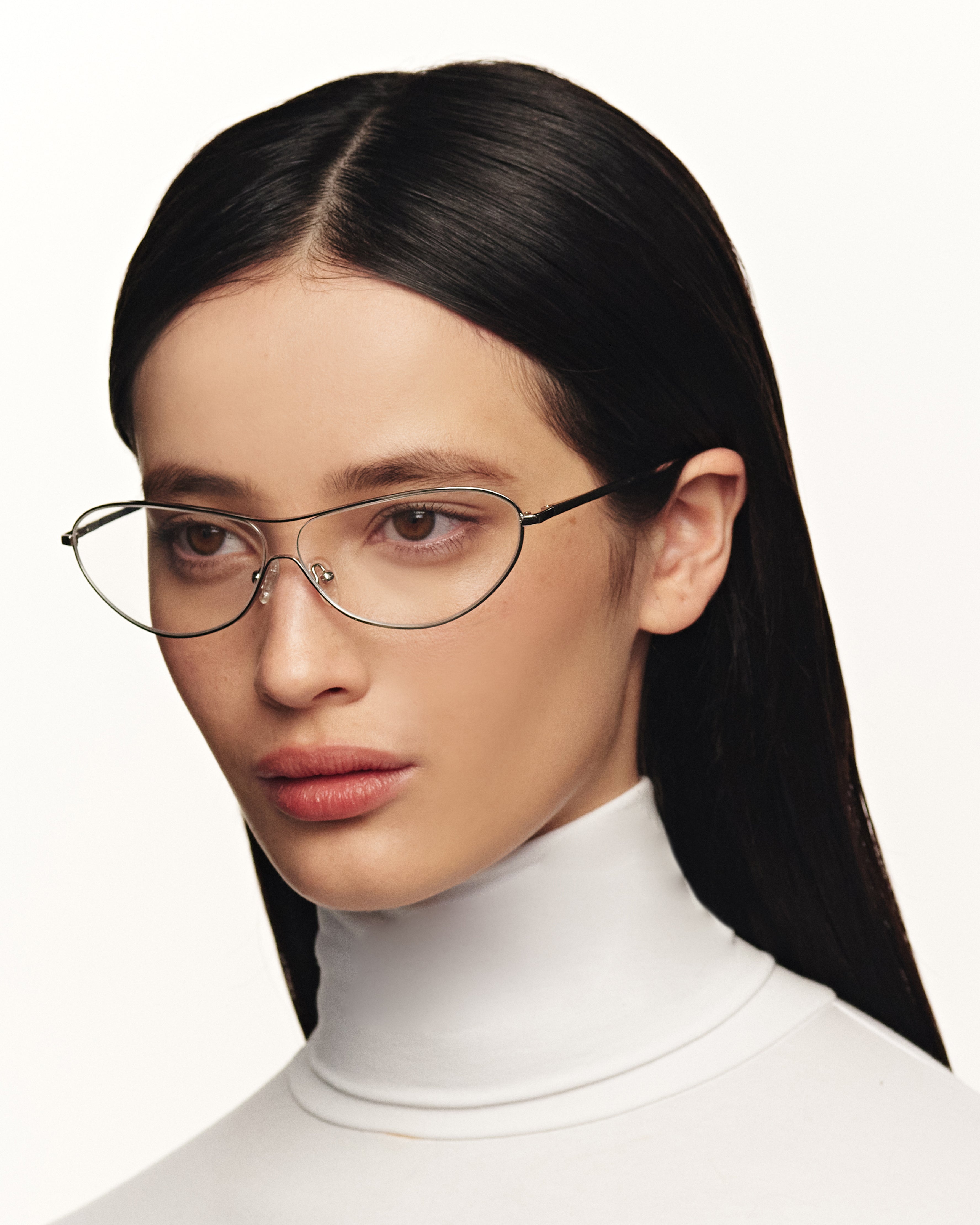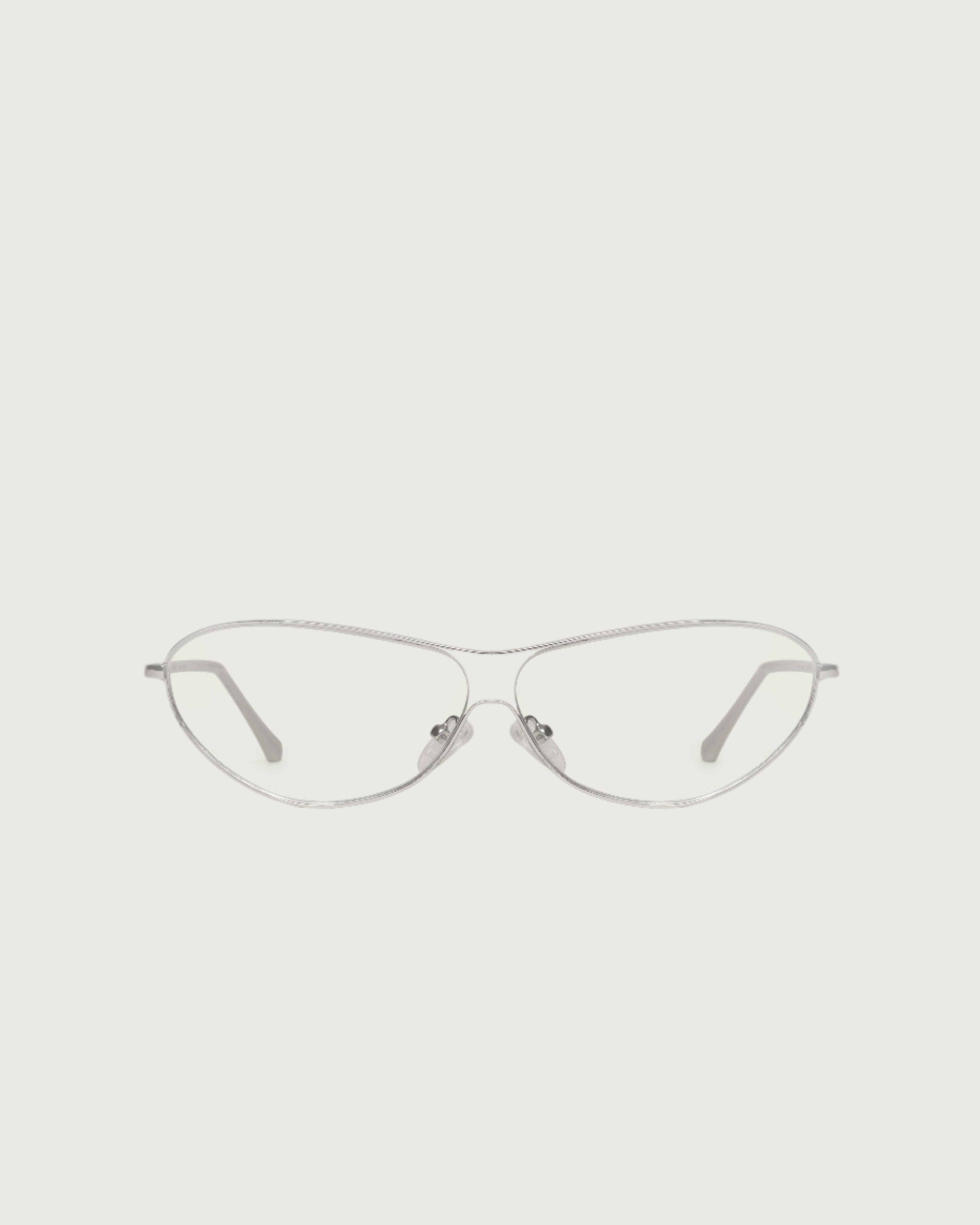 A sleek pilot frame with round, upturned corners.