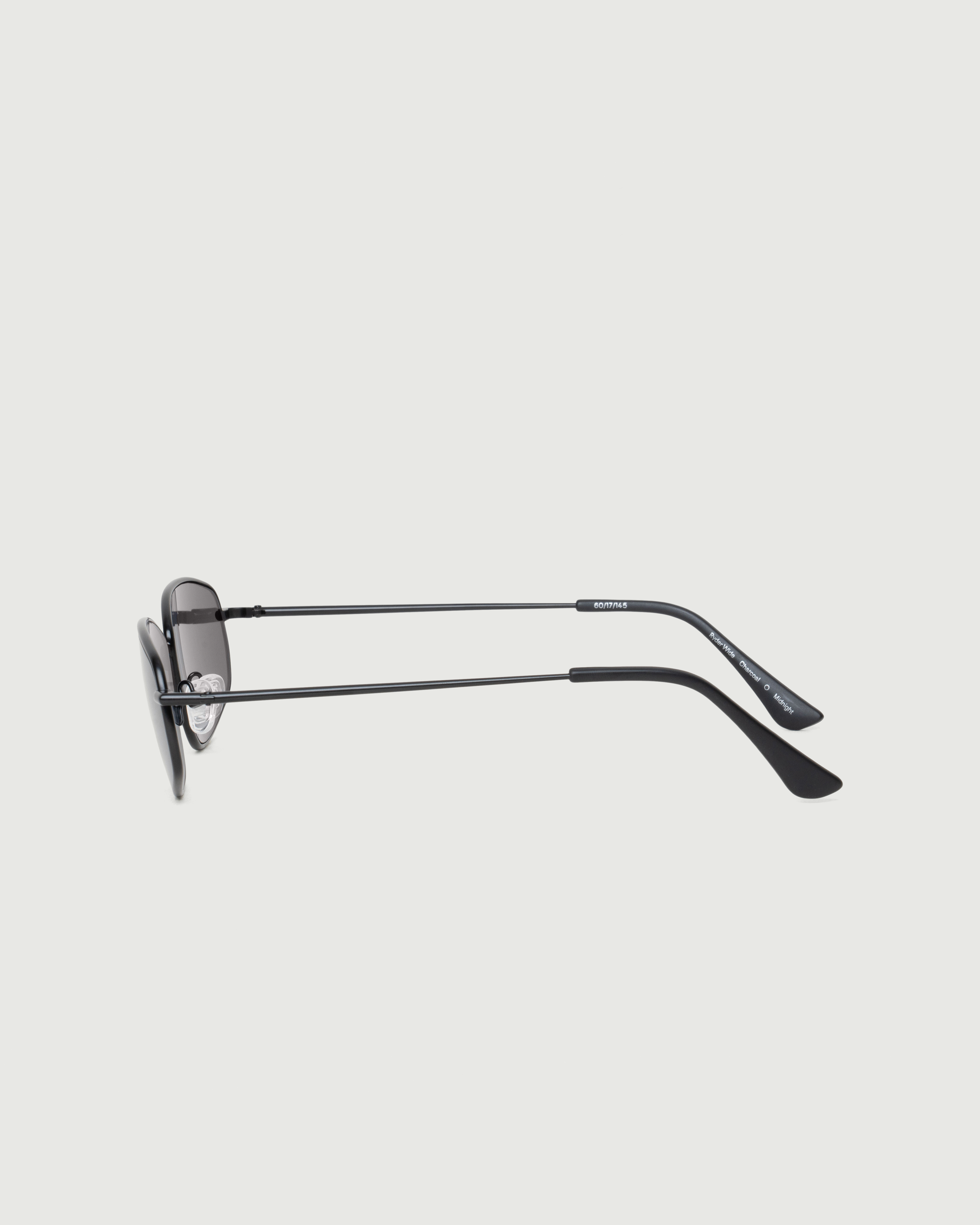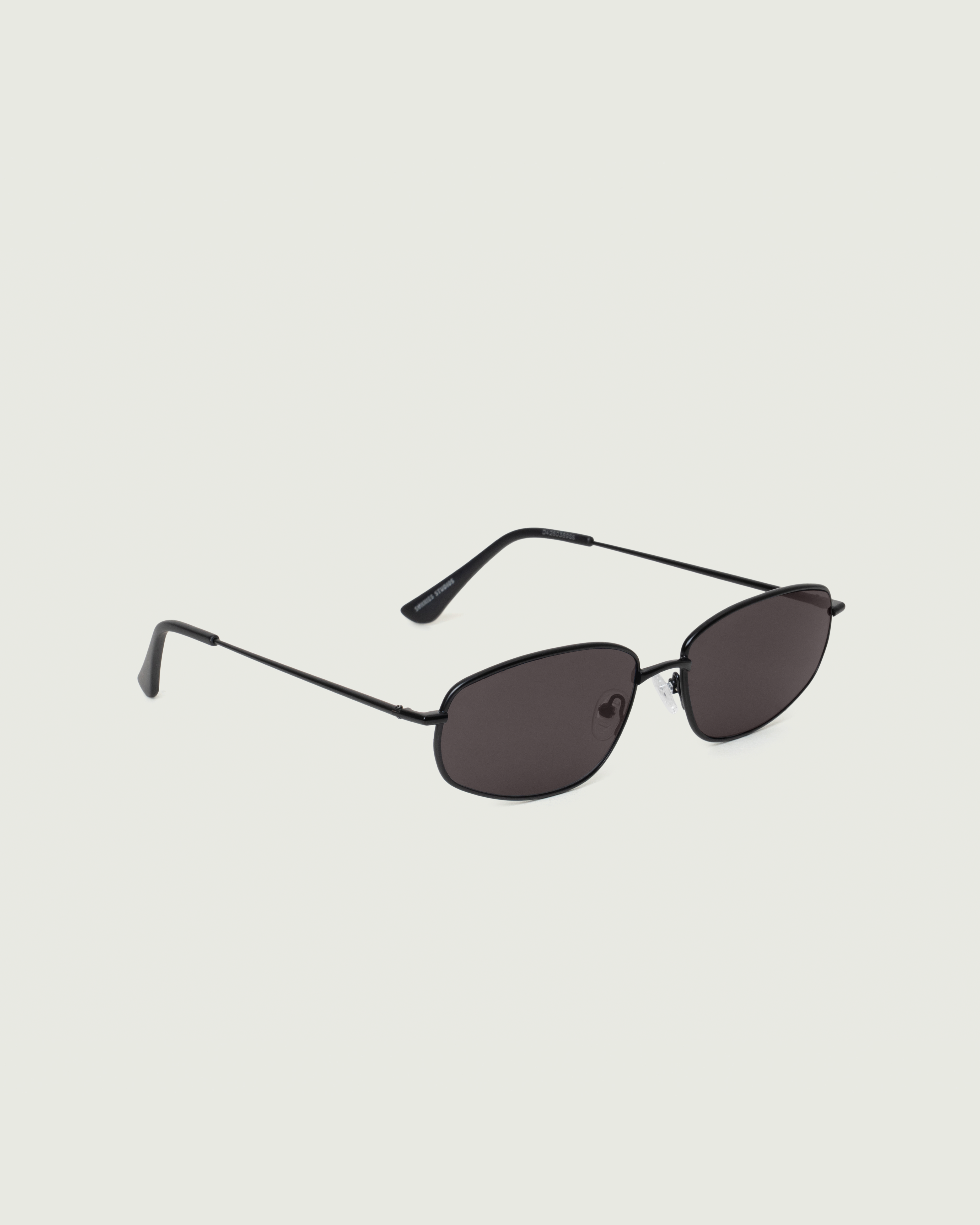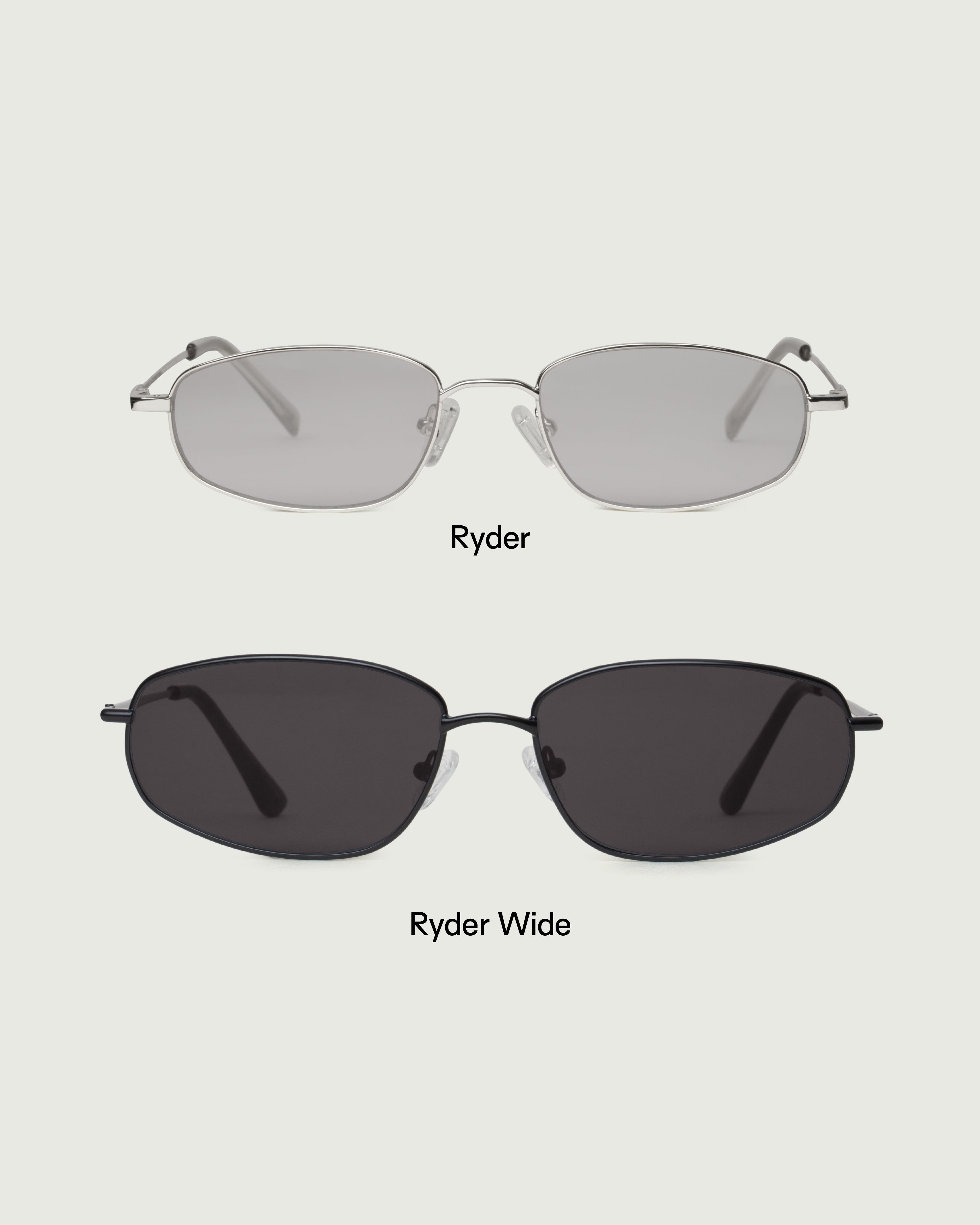 An upswept rectangular metal frame for a wide fit. Also available in a narrow size.